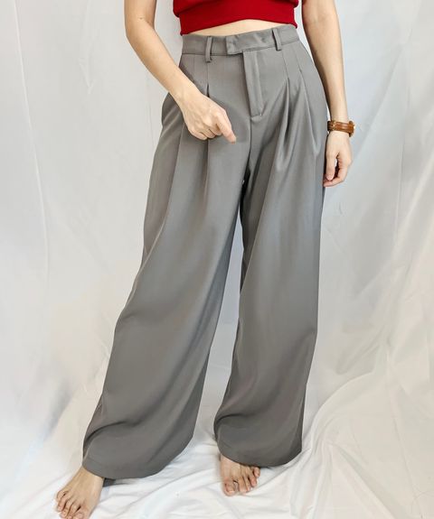 -5KG HIGH WAIST WIDE LEG PANTS IN GREY
