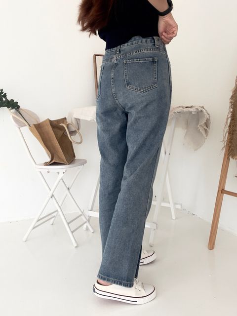 DENIM HIGH WAIST STRAIGHT CUT JEANS