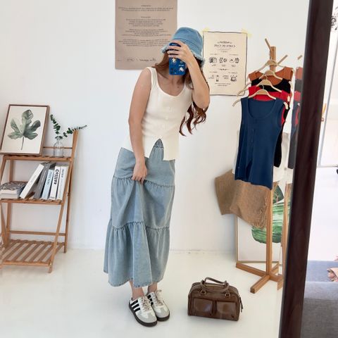 -5KG HIGH WAIST SLIT DENIM SKIRT