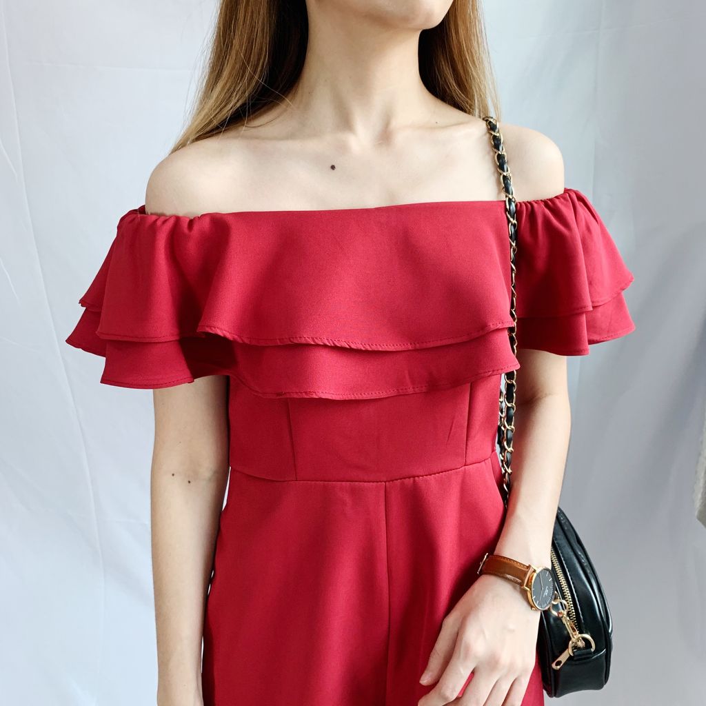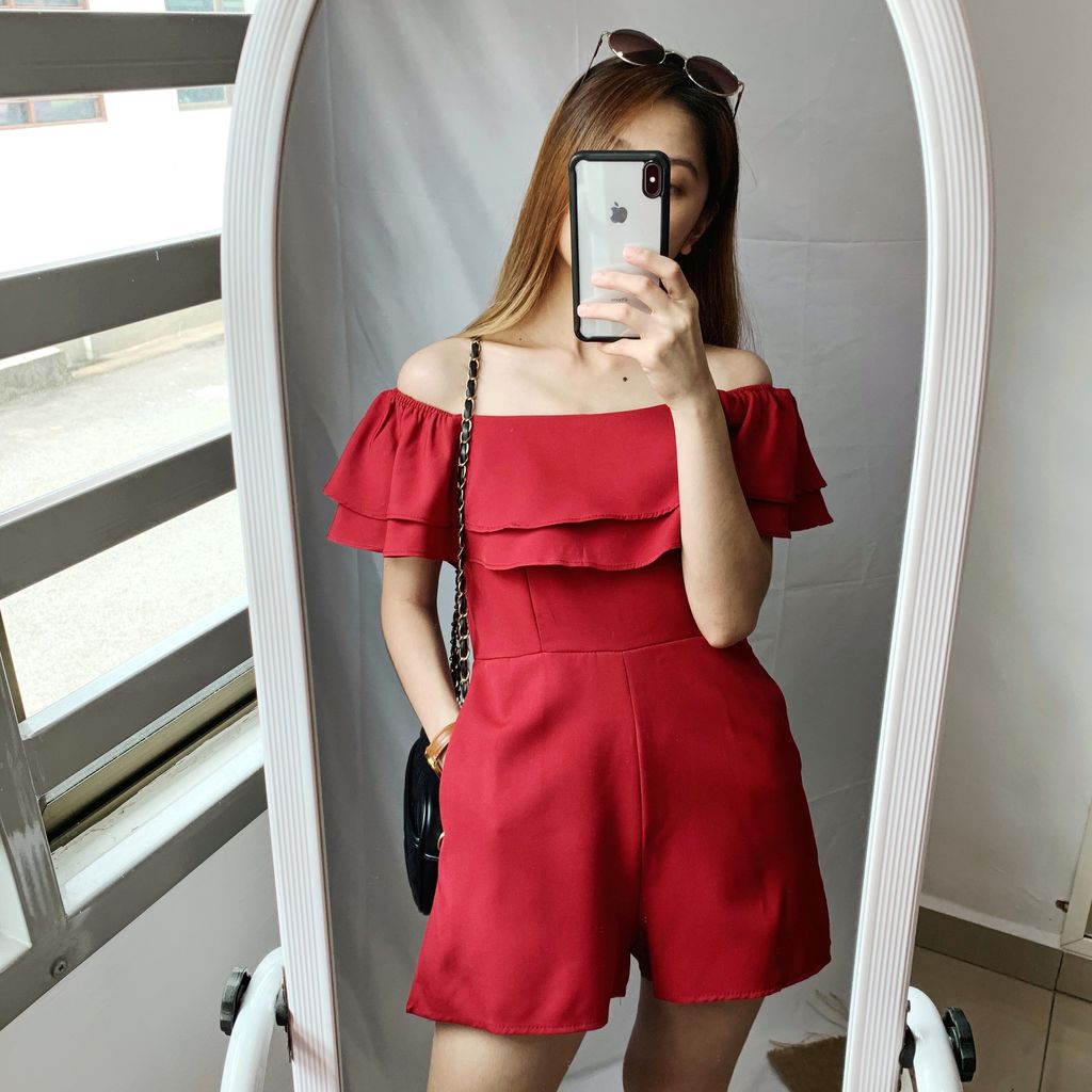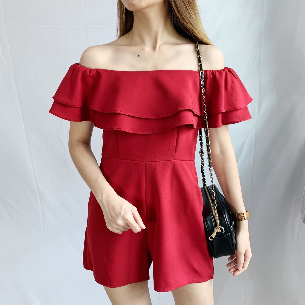 GOODDAY OFF SHOULDER RUFF ROMPER IN RED